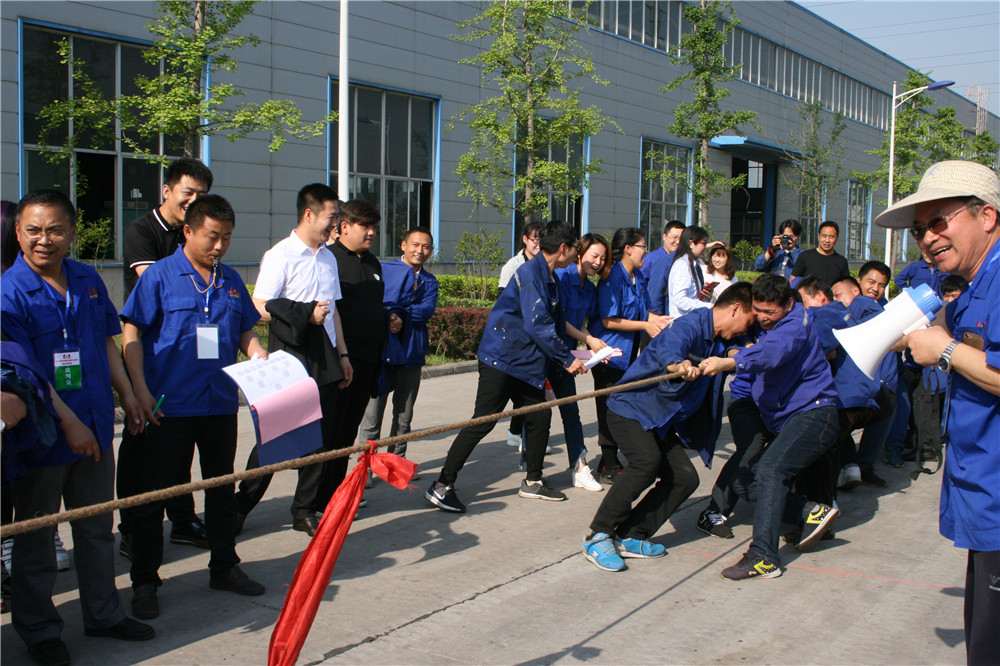 上午8點10分,十三支代表隊在引導員的引導下,隨著運動員進行曲的音樂,身著工裝,排著整齊的隊伍,邁著矯健的步伐,精神抖擻依次進場并經過主席臺。開幕式在雄壯的國歌中拉開了序幕,集團公司副總經理郭日倉發表熱情洋溢的講話,他說:職工運動會是弘揚企業精神,加強企業文化建設的一項重要途徑和載體,它能夠激發職工熱情,強健職工體質,凝聚職工力量,使職工以更加飽滿的工作激情投入到企業的各項工作中。本屆運動會共有270余名參賽選手參加13個項目的比賽。希望全體職工把本屆運動會激發出來的熱情,轉化為愛崗敬業、忘我工作的巨大動力,凝聚成攻堅克難、奮發有為的強大合力,在董事會的領導下,精誠團結,攜手并進,共同譜寫林州重機新篇章。裁判員代表李榮、運動員代表秦建國分別進行了宣誓,最后總經理郭釧宣布第三屆職工運動會開幕。